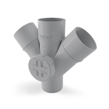 PVC SWR Selfit double Y fittings with door opening, designed to offer robust four-way pipe connections in soil, waste, and rainwater drainage systems, featuring easy maintenance access.