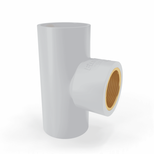 • PVC tee fitting with corrosion-resistant brass insert