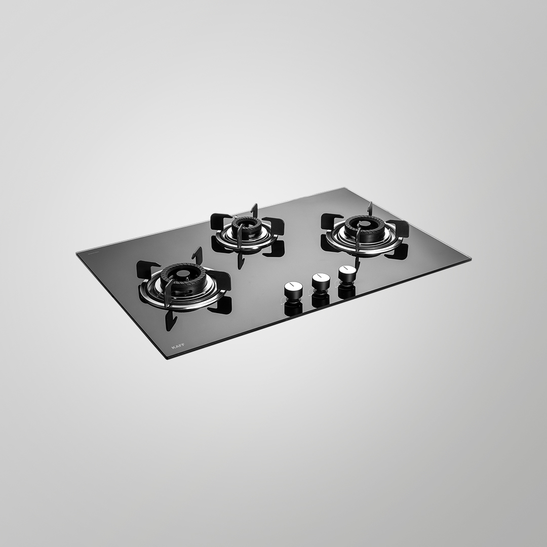 The KAFF CRH 783 is a stylish and high-performance built-in hob designed for modern kitchens. It features three efficient black coated tornado style burners, including two triple ring burners for powerful cooking and one dual ring burner for precise heat control. The auto ignition system ensures hassle-free lighting, while the durable metal knobs offer a premium feel and reliable control. The hob is built with an 8mm thick black tempered glass surface that adds elegance and is easy to clean. Complemented by a stainless steel drip tray and matt enameled pan supports, it provides sturdy and safe cooking experience.