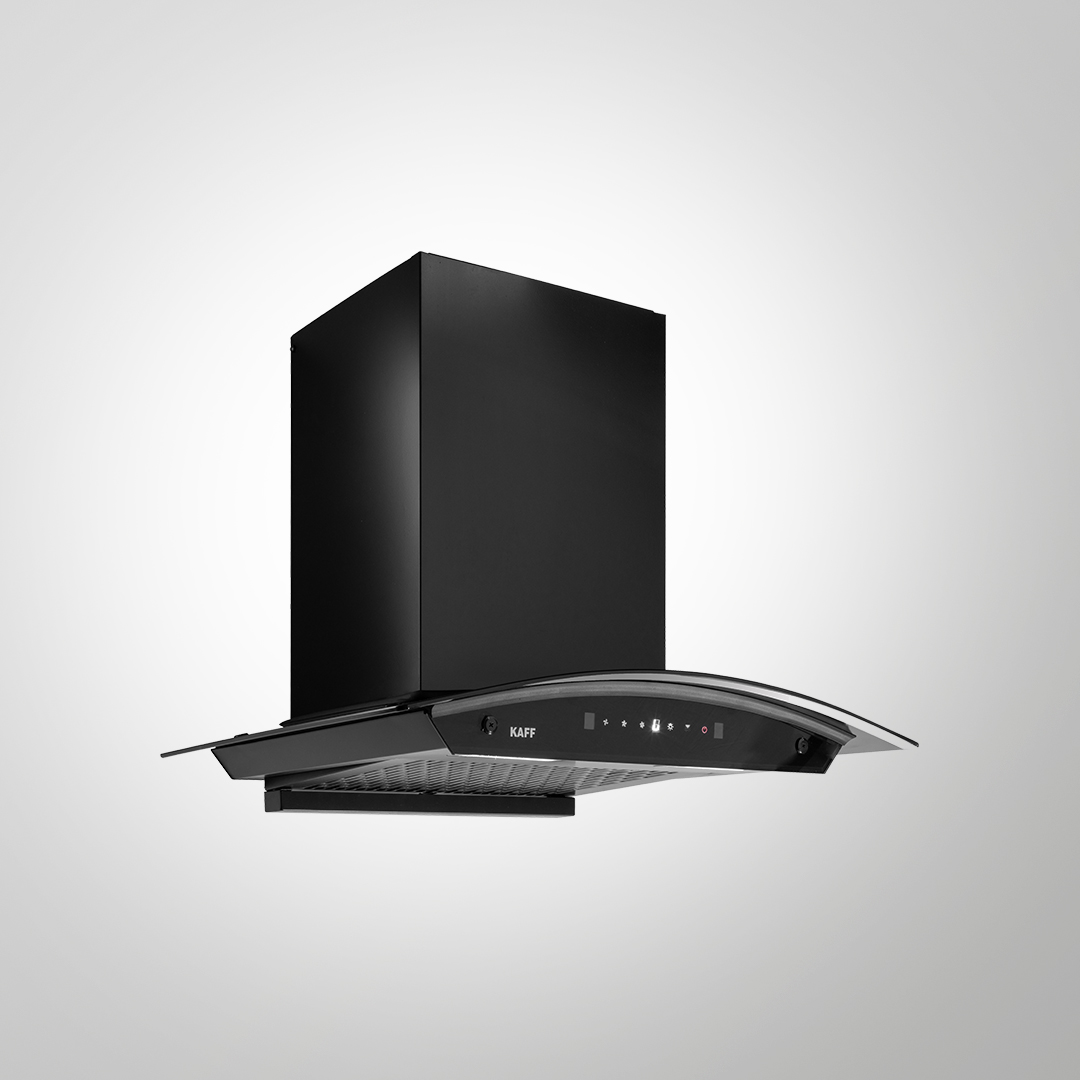 The KAFF MAINZ DHC 60 blends advanced filterless and dry heat auto clean technology for a maintenance-free kitchen experience. An efficient copper-wound motor delivers up to 1,200 m³/h airflow, effectively clearing smoke, oil, and odours during daily cooking. The chimney features an elegant curved tempered glass front panel, matte black finish, and an intuitive thermostatic touch control panel with 3 speed gesture motion. Energy-saving frosted LED lighting ensures excellent visibility over the cooktop while maintaining low power consumption. The included oil collector provides easy and clean maintenance.